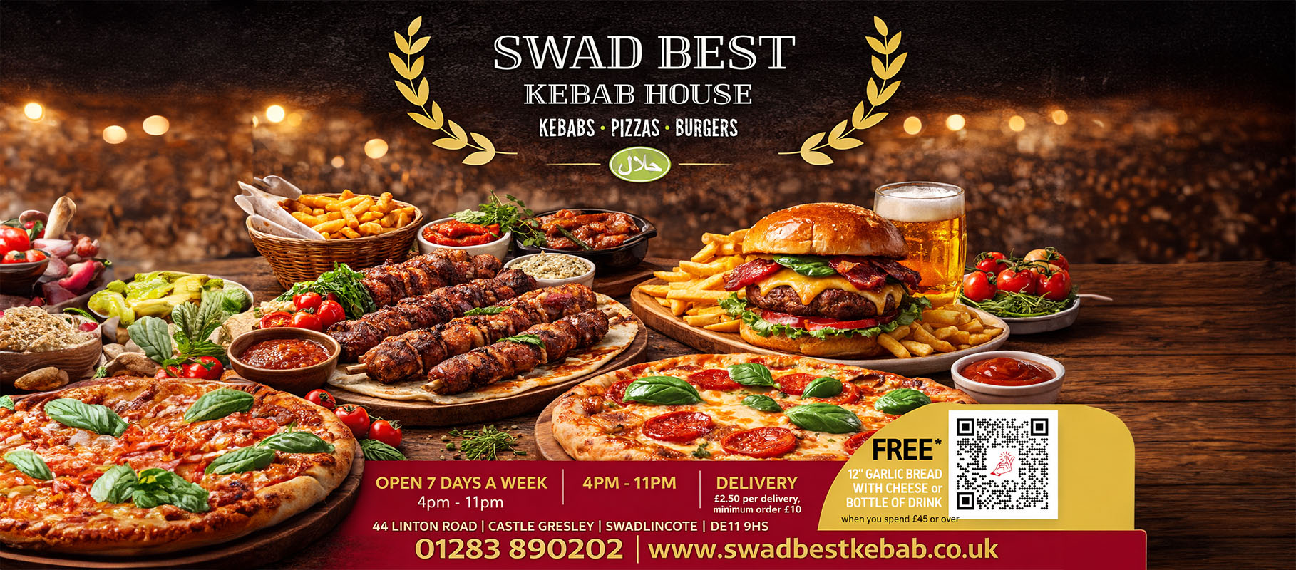About Swad Best Kebab Welcome to 44 Linton Rd , serving a wide selection of Kebab and Pizza dishes for collection or delivery when you order from our official website swadbestkebab.co.uk. With Pizzas, Kebabs, Burgers, Jacket Potatoes, and lots of other fast food dishes on the menu you are sure to find something to suit all taste buds. Sink your teeth into the House Special Kebab with donner, lamb shish, chicken shish, kofta, chicken donner, grilled wings, 2 pitta, salad, chips, 2 pots of sauce or the Jacket Potato with Cheese and Mushroom the choice is yours! On our website you will find our complete takeaway menu, always up to date with the latest prices and choices and Meal Deals. Our website is easy to order from for collection or delivery! Simply choose your items and add them to your basket, then checkout! At the basket, you can choose collection to collect your food from our shop, or choose delivery to have it delivered to your door! At checkout, we recommend that you choose to register to our website so that you do not have to fill out your details each time you order, or you can choose Guest checkout. You will be sent an email confirmation of your order to the email that you fill in. And also download our mobile app for quicker and easier ordering on your mobile phone. Our mobile apps are available to download on Google Play for Android phones and on the Apple App Store for iPhones. Simply search for swadbestkebab on Google Play Store. For iPhones, download the EATZY app from the Apple App Store and choose swadbestkebab Us from the app. We are open for service Sunday to Thursday from 3 pm to 11 pm and Friday to Saturday from 3 pm to 1 am. Thank you for visiting the official website ofswadbestkebab. Please feel free to contact us if you require further assistance or if you would like to order over the phone.